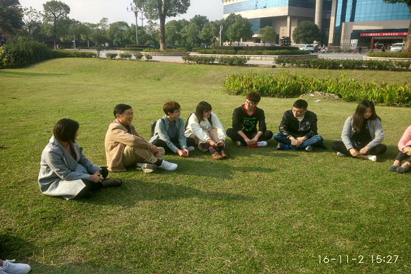 11月2日星期三,阴霾了许久的天气终于放晴。在这和煦的一天,院关工委常务副主任李雁老师与14级日语2班的同学在图书馆前的芙蓉广场草坪进行了有关党章的学习活动。