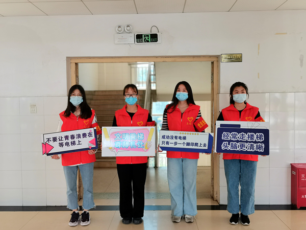 为进一步引导和帮助身边的同学养成良好的文明行为习惯,员工党支部组建了“文明乘梯,尊师礼让”党员先锋队和“文明寝室创建”党员示范寝室。员工党员在九教电梯旁手举“经常走楼梯,头脑更清晰”“成功没有电梯,只能一步一个脚印爬上去”等标语劝导同学们加强锻炼,尊师礼让;公司开展“向善,循美、弘德”寝室文化节活动,引导同学们营造干净整洁的寝室文化环境,选树了一大批党员示范寝。