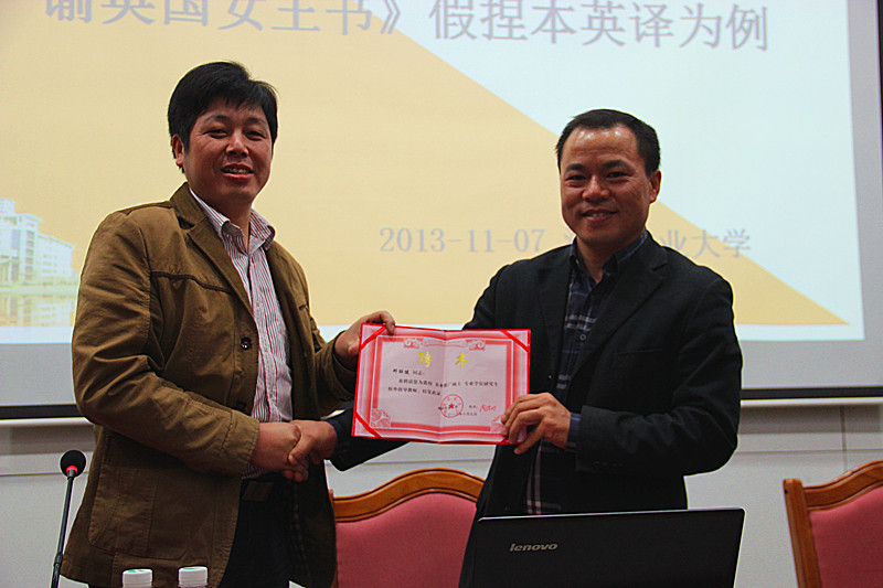 11月7日下午,学海报告厅迎来了教育部大学外语教学指导委员会委员、湖南省大学外语专业委员会副会长、中南林业科技大学外国语公司经理邓联健教授主讲的精彩讲座。讲座由张玉上副经理主持。经理胡东平教授和近200名师生在学海厅听取了讲座。在讲座之前,胡东平经理向邓联健教授颁发了“MK体育专业学位校外研究生指导教师”的聘书。