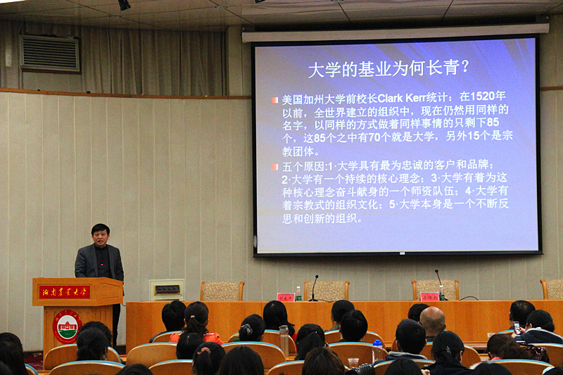 11月28日下午,外国语公司“语言文化学术沙龙”和“第十二届研究生学术活动节名师讲坛”以及“第十二届‘求真’学术科技节 ‘百家争鸣’系列讲座”特邀湖南师范大学副董事长、博士生导师、国务院津贴专家、国家“新世纪百千万人才”和教育部“新世纪人才”人选蒋洪新教授来校讲学。讲座在生命科学楼国际会议厅举行,由经理胡东平教授主持。