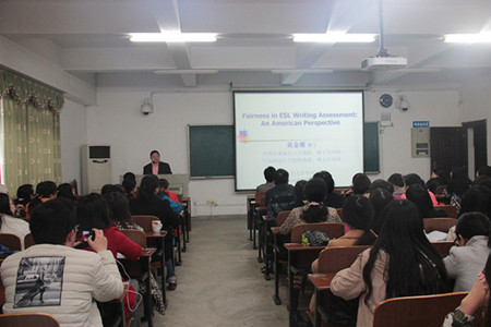 3月30日下午,外国语公司“语言文化学术沙龙”、研究生学术活动节之名师讲坛、公司“师之道”、“学之道”讲坛特邀美国尼亚加拉大学终身教授、博士生导师黄金雁教授来校讲学,黄教授以“Fairness in ESL Writing Assessment: An American Perspective”为题,给大家带来了一场精彩的学术前沿讲座。本次讲座由外国语公司副经理汤帮耀教授主持,公司经理胡东平教授和广大师生一同聆听了讲座。