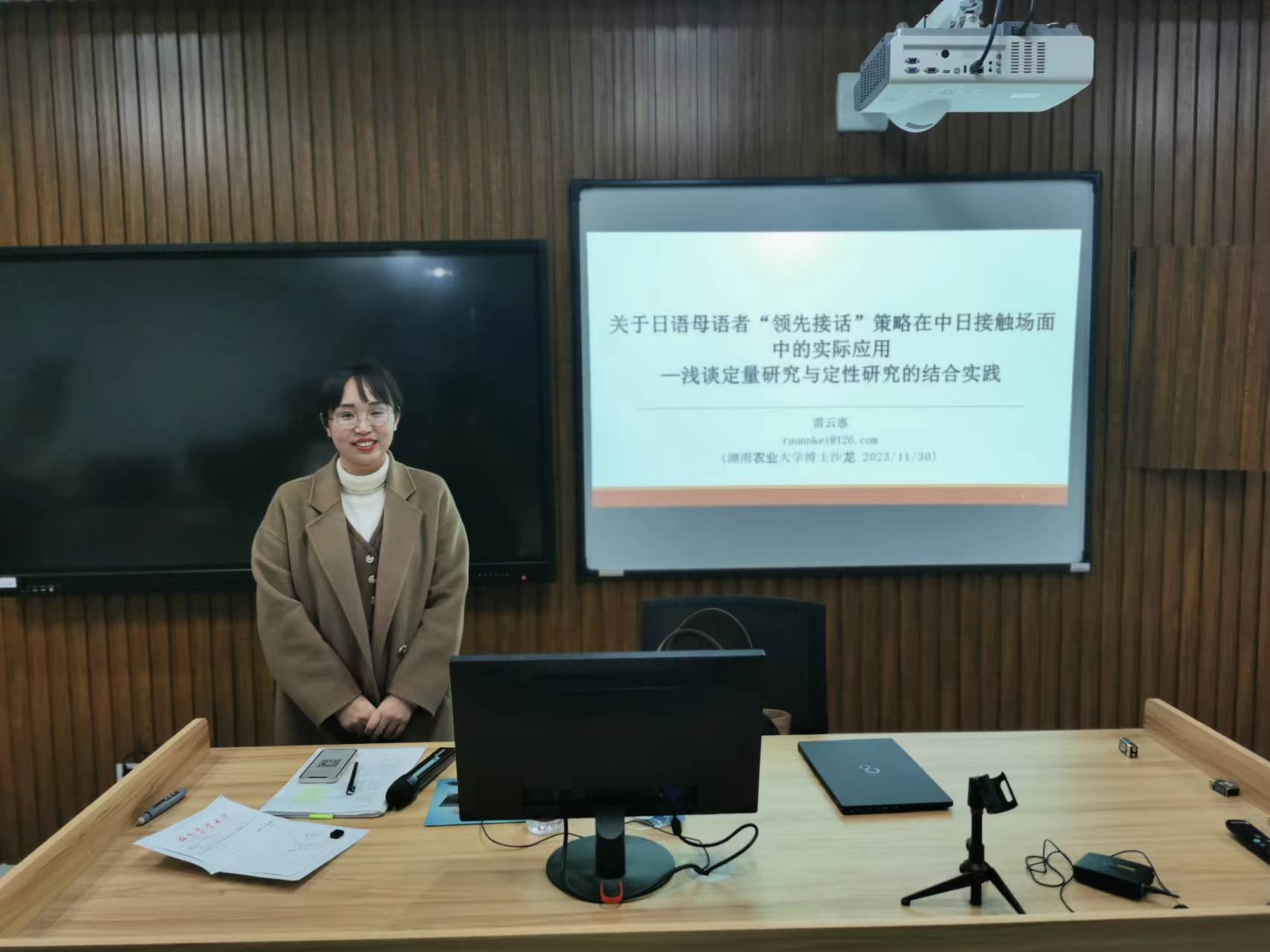 2023年11月30日下午,MK体育在第九教学楼南609室成功举办了“三道大讲坛”之“研之道”第八场博士沙龙。主讲人为日语系雷云惠博士,沙龙活动由人文与外语公司谭燕萍副经理主持,师生代表60余人参加了本次活动。