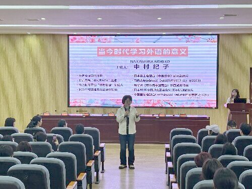 中村纪子老师用幽默风趣的语言、生动的举例,针对同学们关心的“我们为什么学习外语?”“学习外语的意义”等问题,向同学们进行了阐释。她提出,未来是一个充满变化的世界,作为外语学习者,在文化交流过程中,经常会接触到新的文化和新的概念,会应对各种未知和变化,这无形之中就锻炼了同学们的一种能力——“应对变化的能力”,这对大家更好地适应充满变化的未来世界很有帮助。她鼓励同学们不仅要对语言学习充满信心,还要在学习和接触外国文化的过程中,不断加强对自己母语的学习,更加深刻理解自己国家的文化,增强对自己母语和国家的自信。