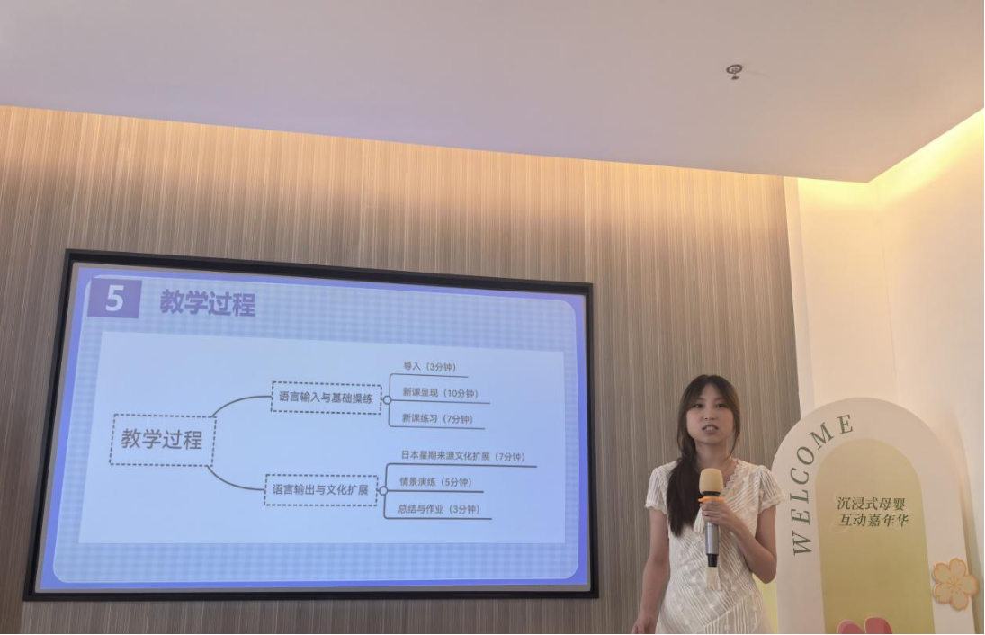 大赛邀请洋光教育全国教学主管苏晓妹、资深教师蒙彦铮和公司日语系主任潘红娅、副主任何环、教师王丽珠等担任评委。比赛采用“5分钟说课 + 10分钟授课”的考核形式,从教学素养、教学设计、语言表达、教学方法与效果等四个维度对选手进行综合评审。参赛选手们教学目标明确、教态自然,巧妙融合新媒体技术、互动游戏与情景模拟等元素,展示出良好的教学创新能力与日语专业水准,充分体现了校企协同育人的成果。