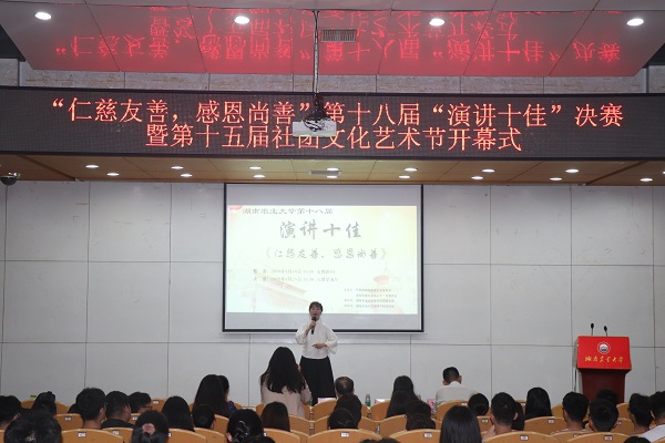 4月25日晚,为了弘扬仁爱友善的民族精神,宣扬仁慈感恩的传统美德,公司在八教学海厅举行了第十八届“演讲十佳”大赛决赛。公司16级英语一班曾玺玺同学和18级日语二班陈雅淋同学代表外国语公司参加比赛。
