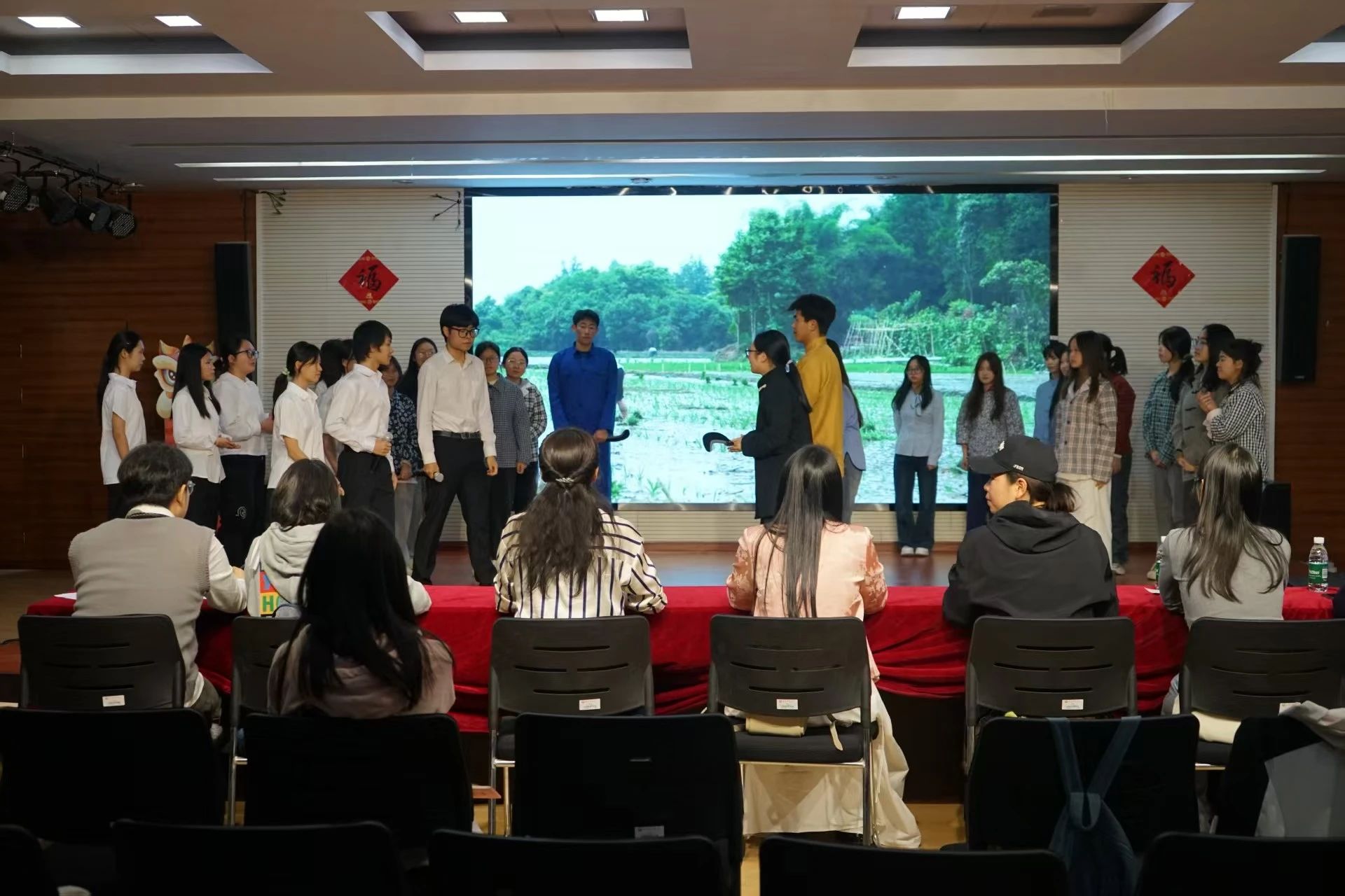 接着日语1班带来了话剧《万山红遍》,以“草莓教授”赵亚夫的真实故事为蓝本,讲述了老员工与新农人携手,用科技与电商赋能乡村振兴的动人篇章。当草莓通过跨境电商飘香世界,舞台上的每一句台词都化作乡村振兴的号角,激荡人心。