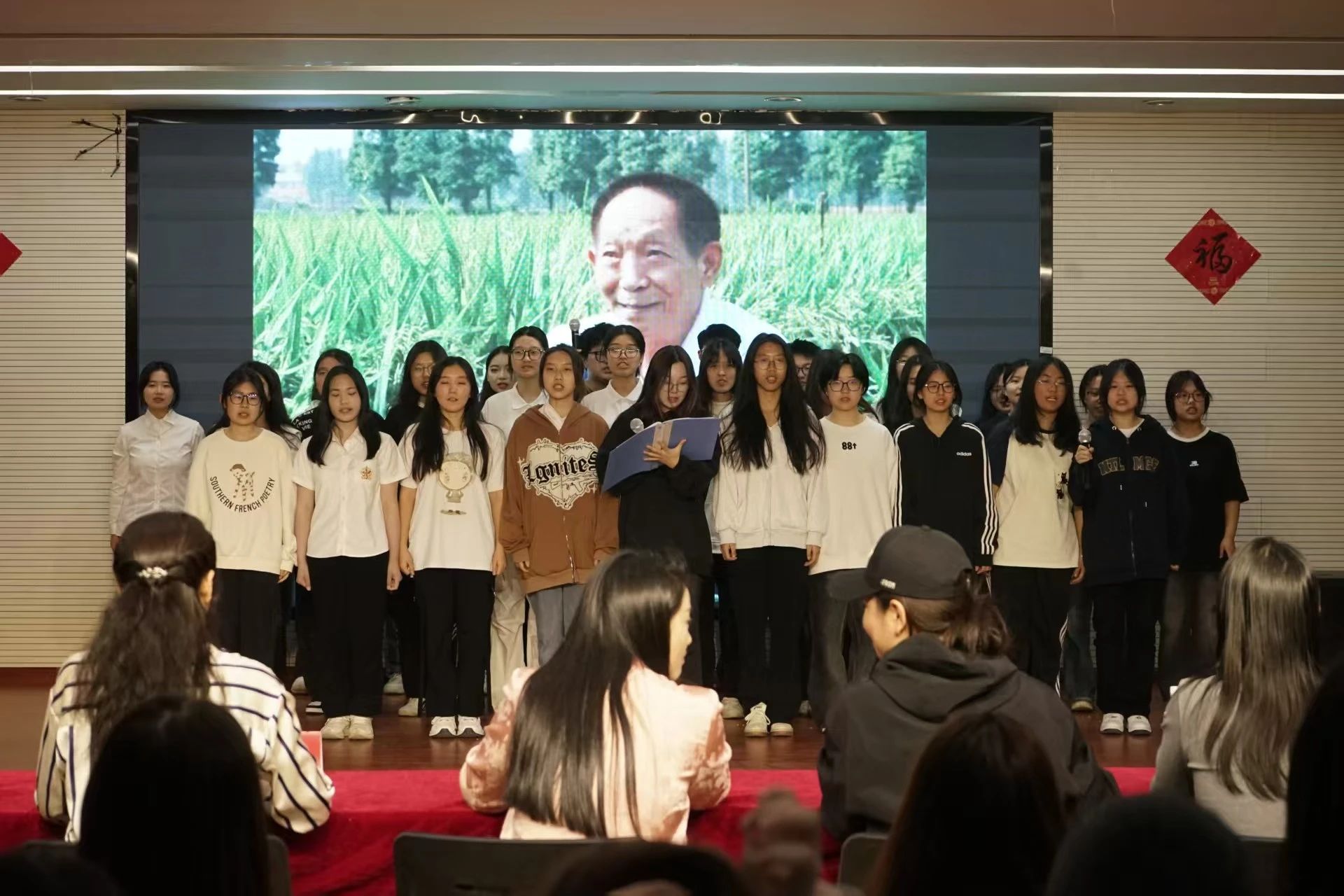 显微镜与锄头相遇,数据流与泥土香交融,两代人的坚守与创新在此刻共鸣。当舞台灯光暗下,一场跨越时空的对话在稻浪中展开。英语5班带来情景剧《深耕:土地与生命的对话》,将袁隆平院士与青年科研者的故事搬上舞台。“把论文写在大地上”——这不仅是科研者的誓言,更是全体农科学子的精神图腾。一粒种子的理想如何长成参天穗浪?答案在青年们坚毅的眼神中熠熠生辉。