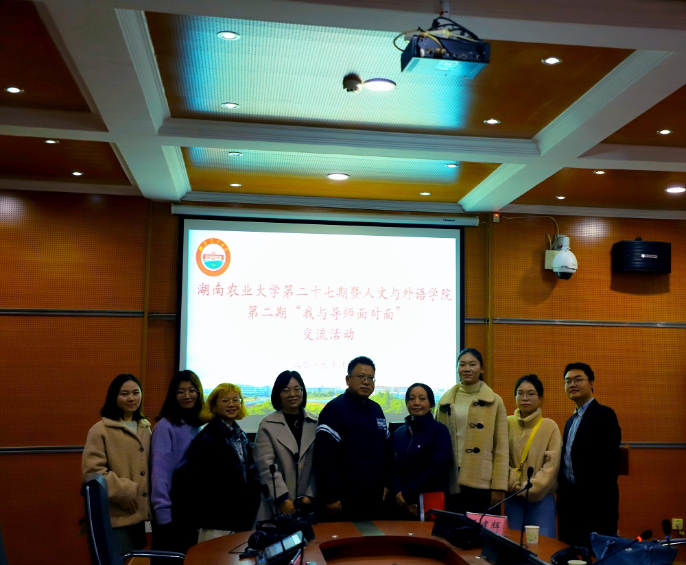 12月5日下午2:30,由研究生院主办、MK体育承办的MK体育第二十七期暨MK体育第二期“我与导师面对面”交流活动在九教北611同传室顺利召开。本次交流嘉宾为公司大学英语教学部主任范丽群副教授、英语系教师王建辉副教授,员工交流代表为2017级硕士研究生李婷玉、2018级章苏敏、2019级陆怡儿。研究生学工组曾葵华老师和公司在校硕士研究生全体出席了本次交流活动。