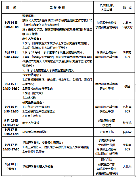 9月14日8:00-18:00,2020级研究生到九教南5楼大厅(英语沙龙)处进行报到注册,严禁提前来校。每位员工当天须佩戴口罩,接受体温检测与健康绿码查验后,于报到点门口每人间隔1米排队进入,公司审查员工报到前旅居史和健康状况,检查身份证、录取通知书、学历证学位证原件,学历认证报告或学历电子注册备案表,准备1寸免冠证件照,并在确认缴清学费后于迎新系统上进行报到确认。