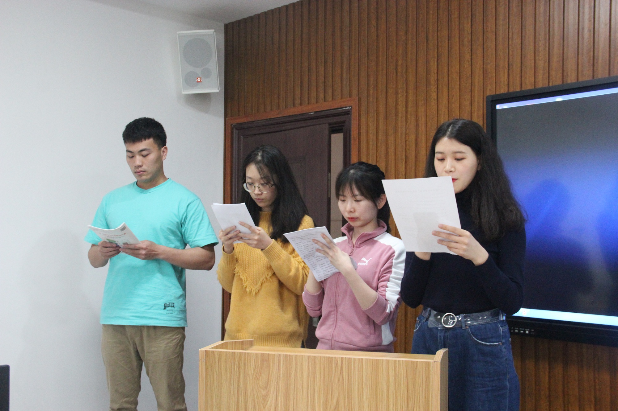 谭燕萍老师首先向同学们讲述了科学家钱学森和程开甲的故事,又以自己的亲身经历,呼吁英语专业的研究生们要有国家荣誉感和家国情怀。张健老师则从《共产党宣言》谈起,通过与同学们分享自己对这一著作的理解,建议同学们要多阅读各类专著以提升自我。