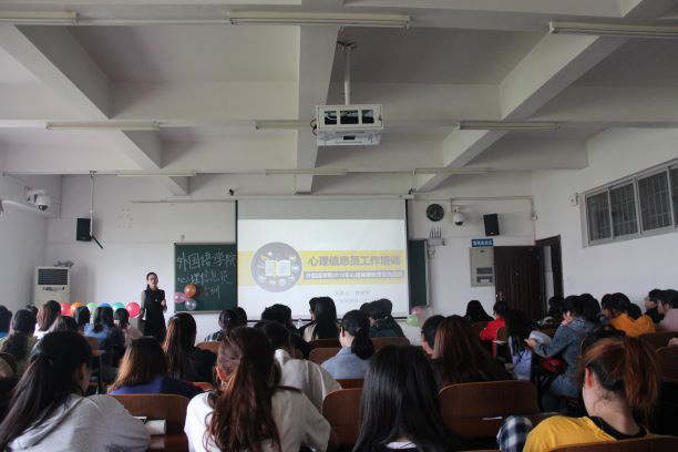 4月23日中午,为了引起同学们对心理健康的关注,外国语公司在九教北408开展了心理信息员的培训工作。外国语公司学工组曾葵华老师作为主讲人出席了本次活动,17级—18级的各班班级心理委员和寝室心理信息员到场聆听学习。